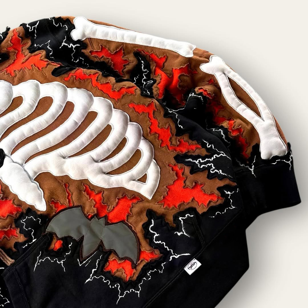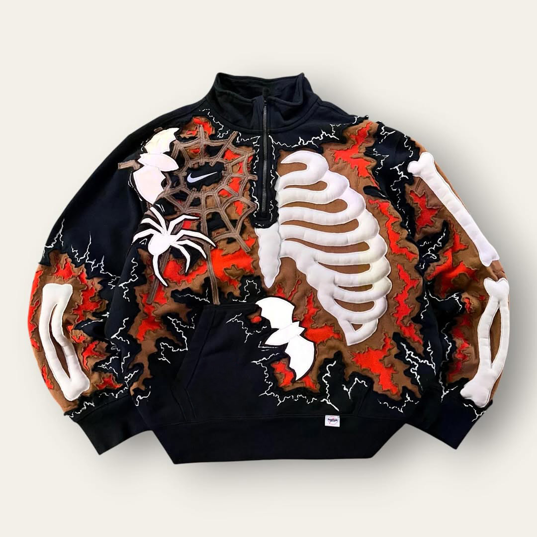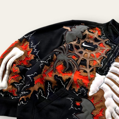 Stand-Collar Zip-Up Skull Sweatshirt