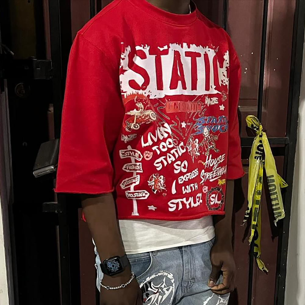 Static Printed Three-quarter Sleeve T-shirt