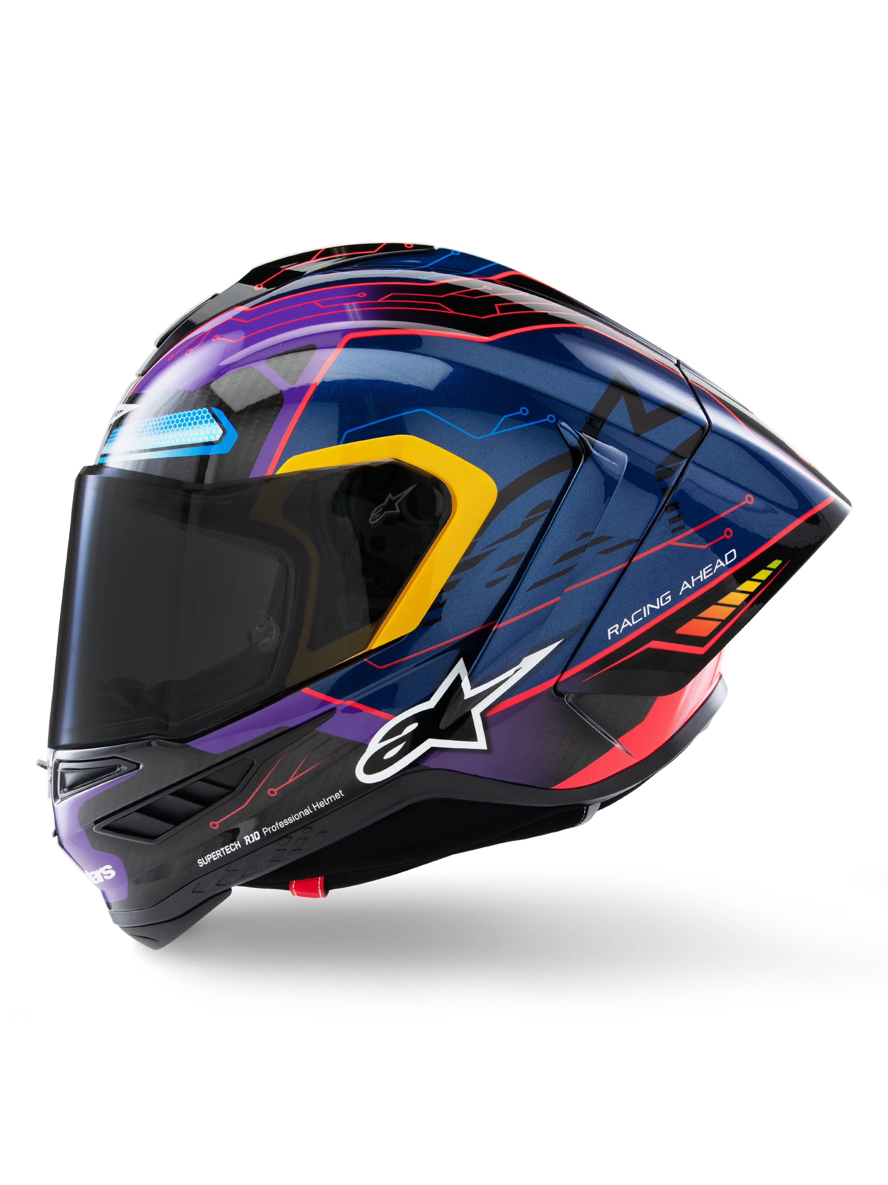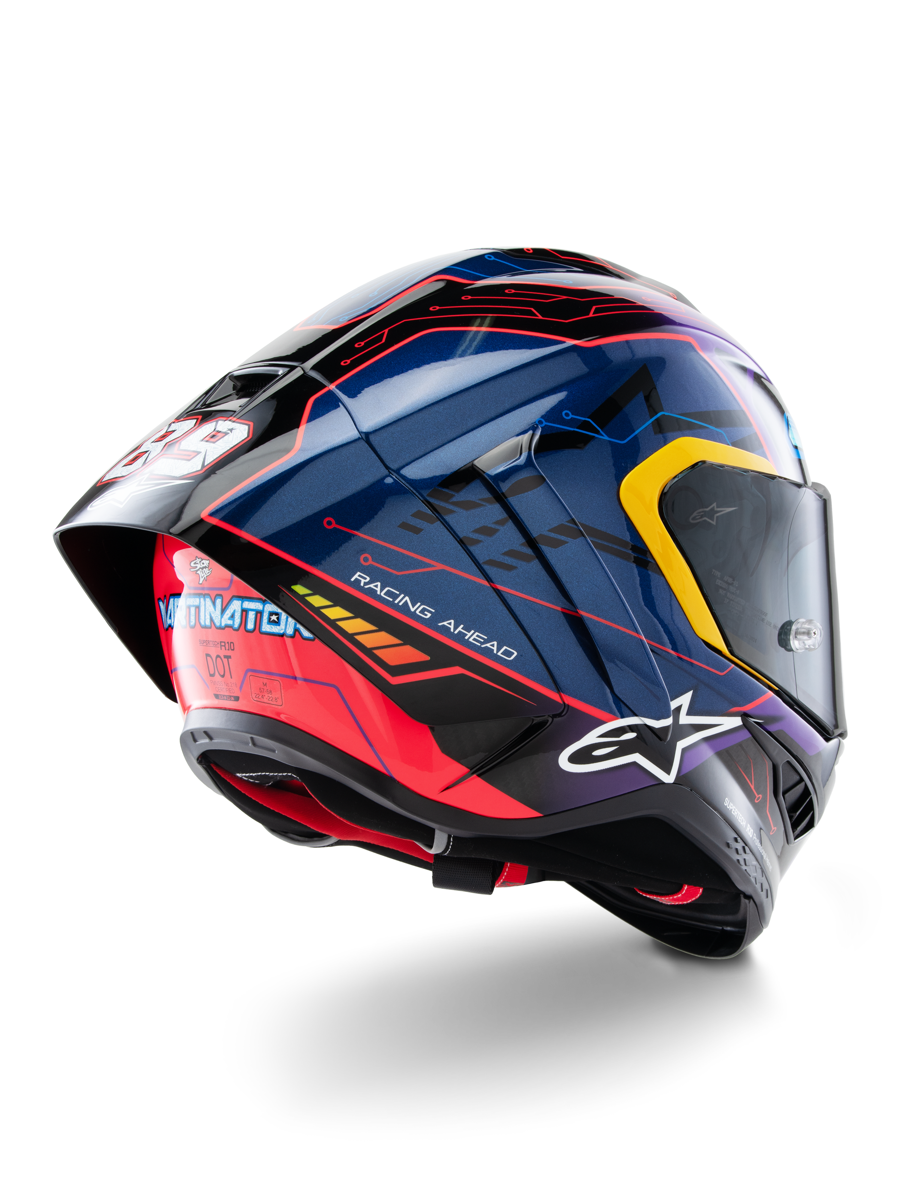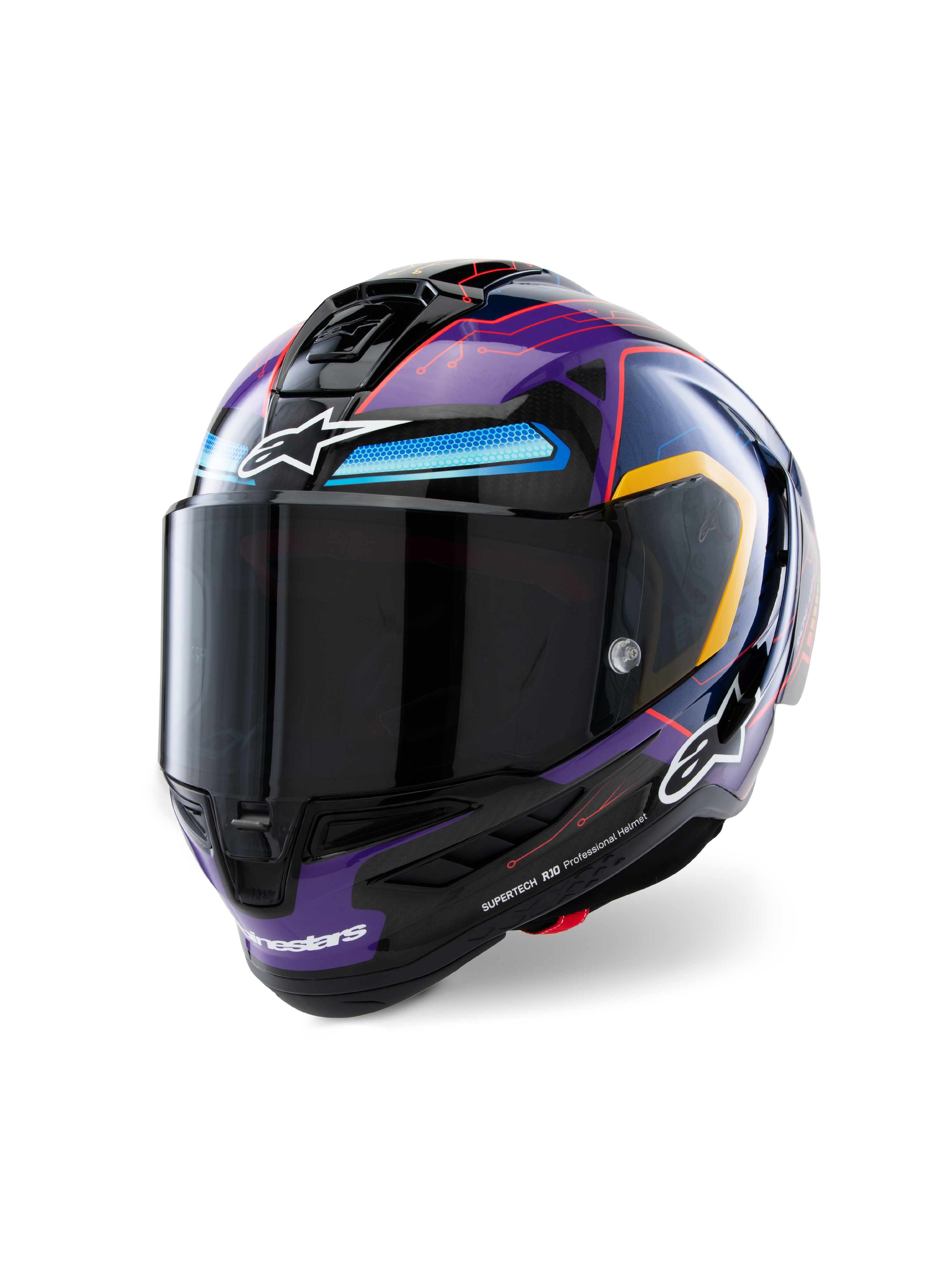 Developed over a decade, the Supertech R10 is Alpinestars' most advanced race helmet, designed for ultimate protection, aerodynamic efficiency, and lightweight performance. Rigorously tested with MotoGP legends like Andrea Dovizioso, Jorge Martin, and Jack Miller, the S-R10 delivers unparalleled safety, ventilation, and comfort.