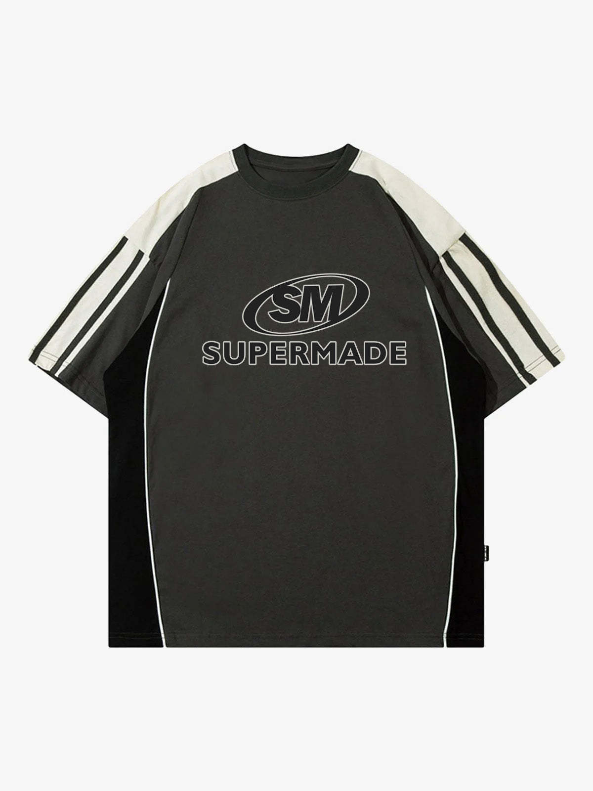 • Detail Features: Short Sleeves, Crew Neck, Contrast Stripes, Graphic Print