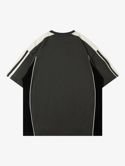 Color-Blocked Strip Racing T-shirt - 2076