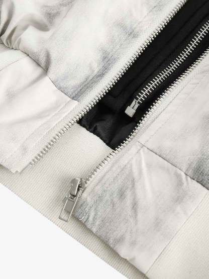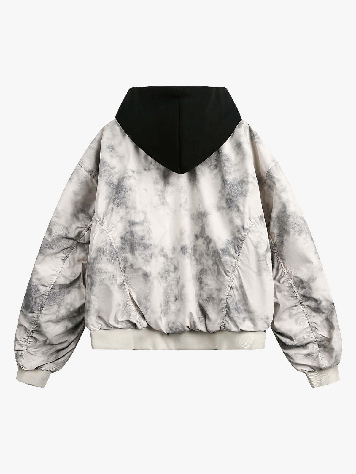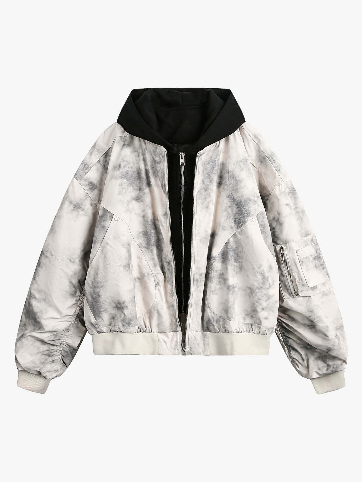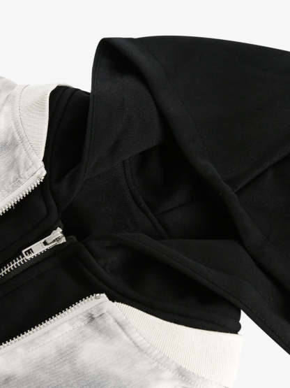 Patchwork Faux Two-Piece Gradient Hooded Bomber Jacket