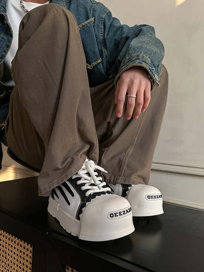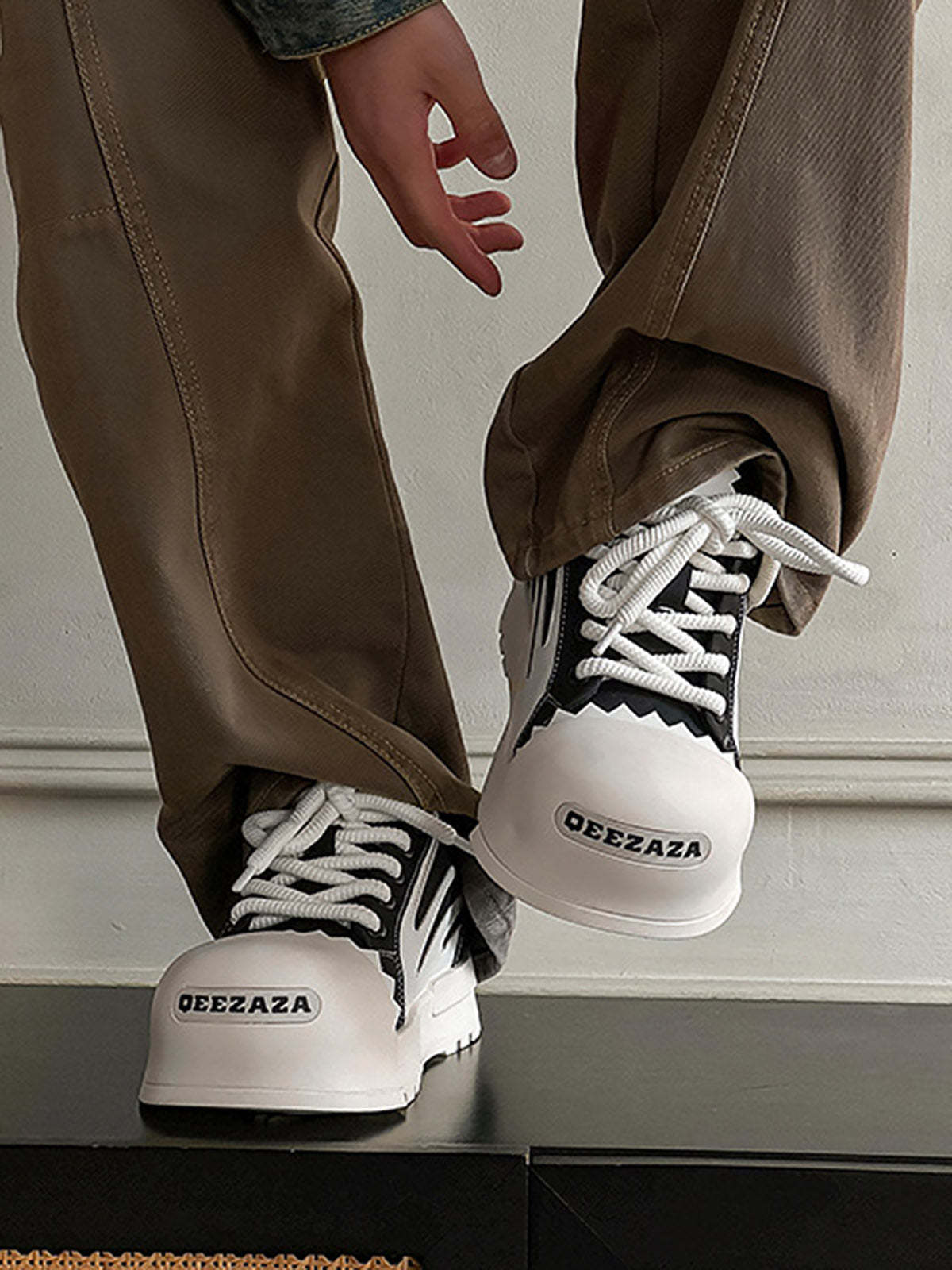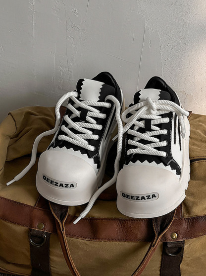 • Design Elements: Contrasting black and white color scheme, distinctive zigzag patterns, chunky sole design