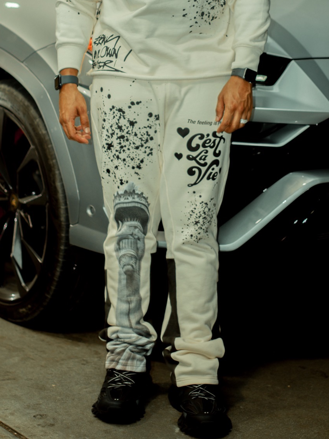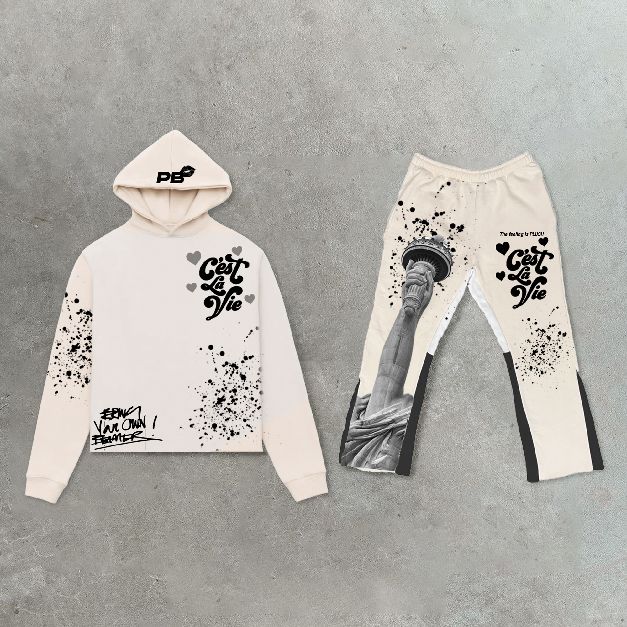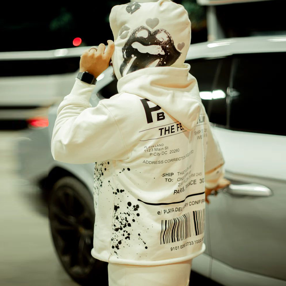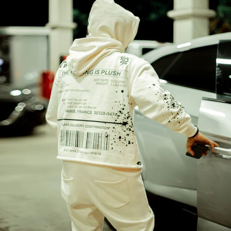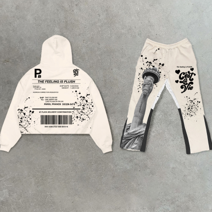 Trendy retro street print hoodie set
