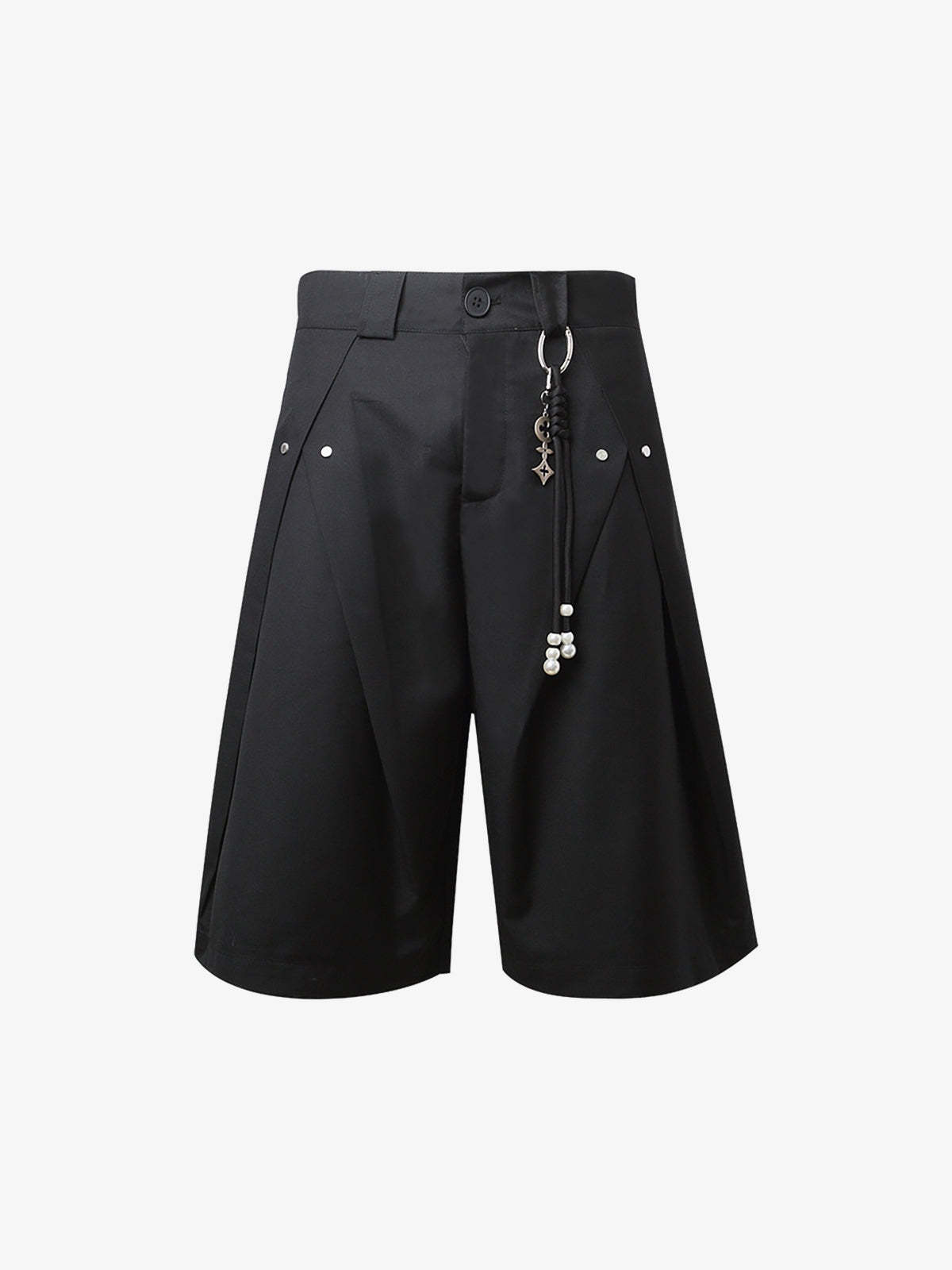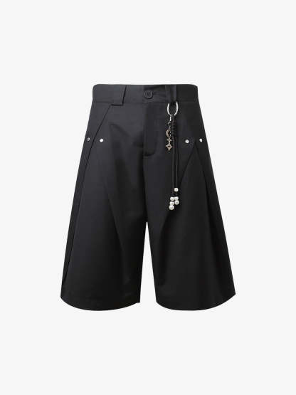 • Design Elements: Asymmetric hem design, decorative tassel with beads, button and belt loop closure