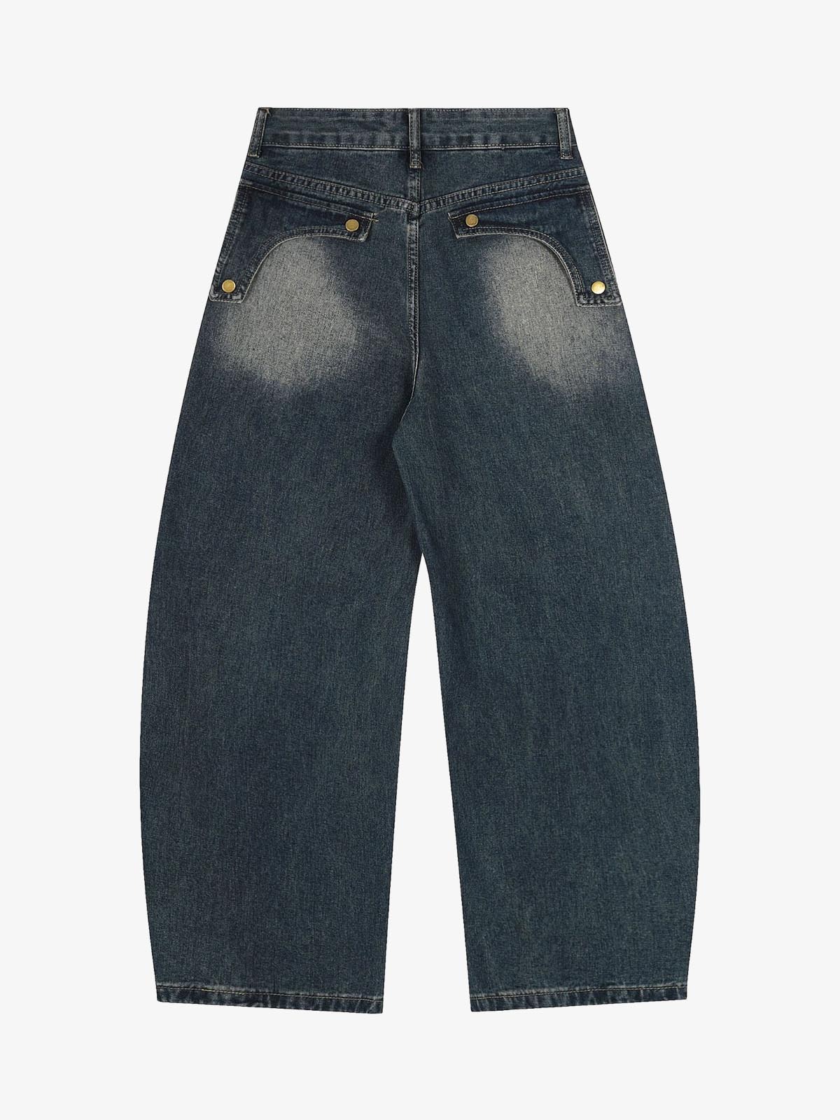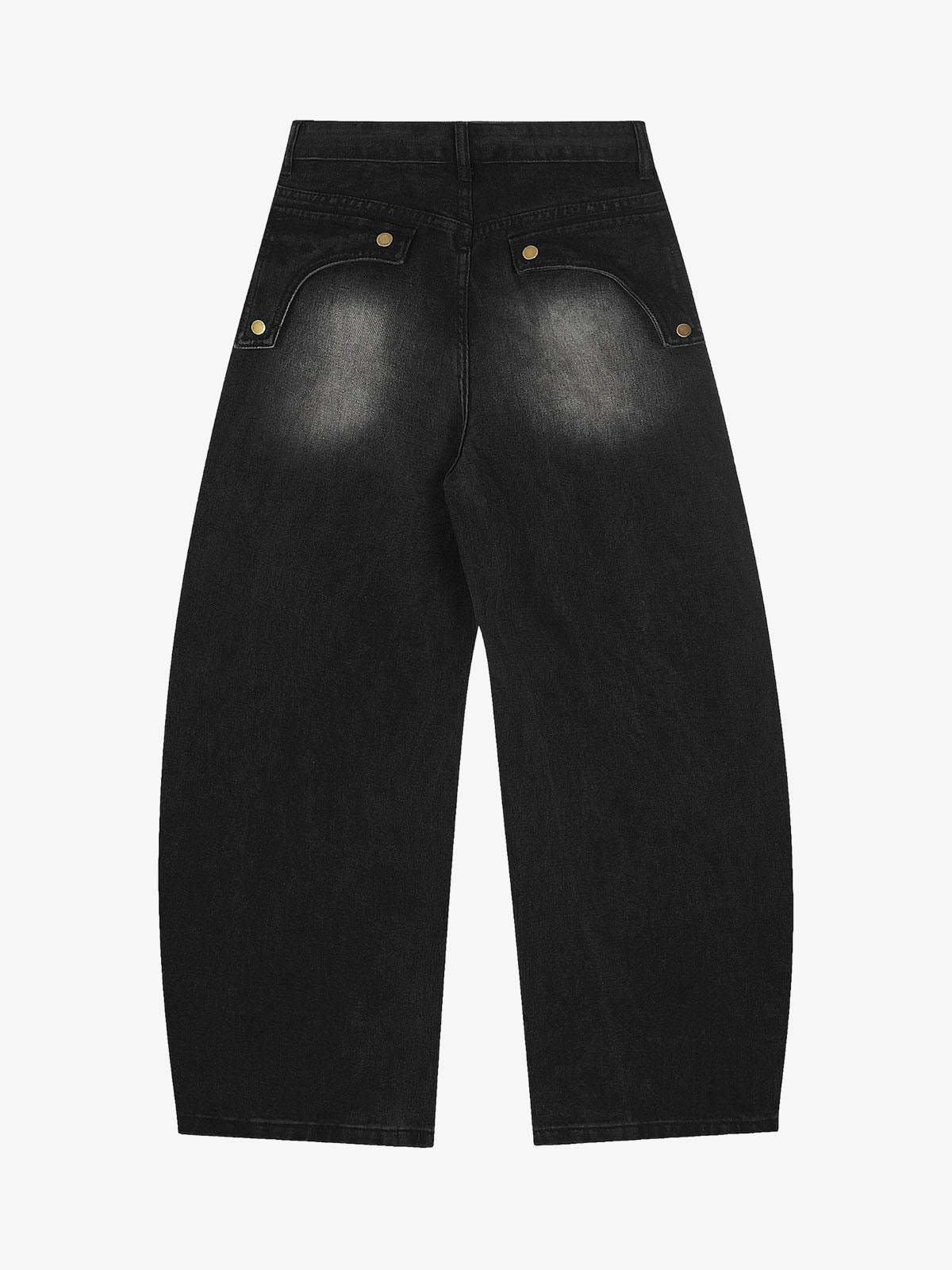 Vintage Embroidered Washed Raw-Edge Graffiti Scimitar Jeans