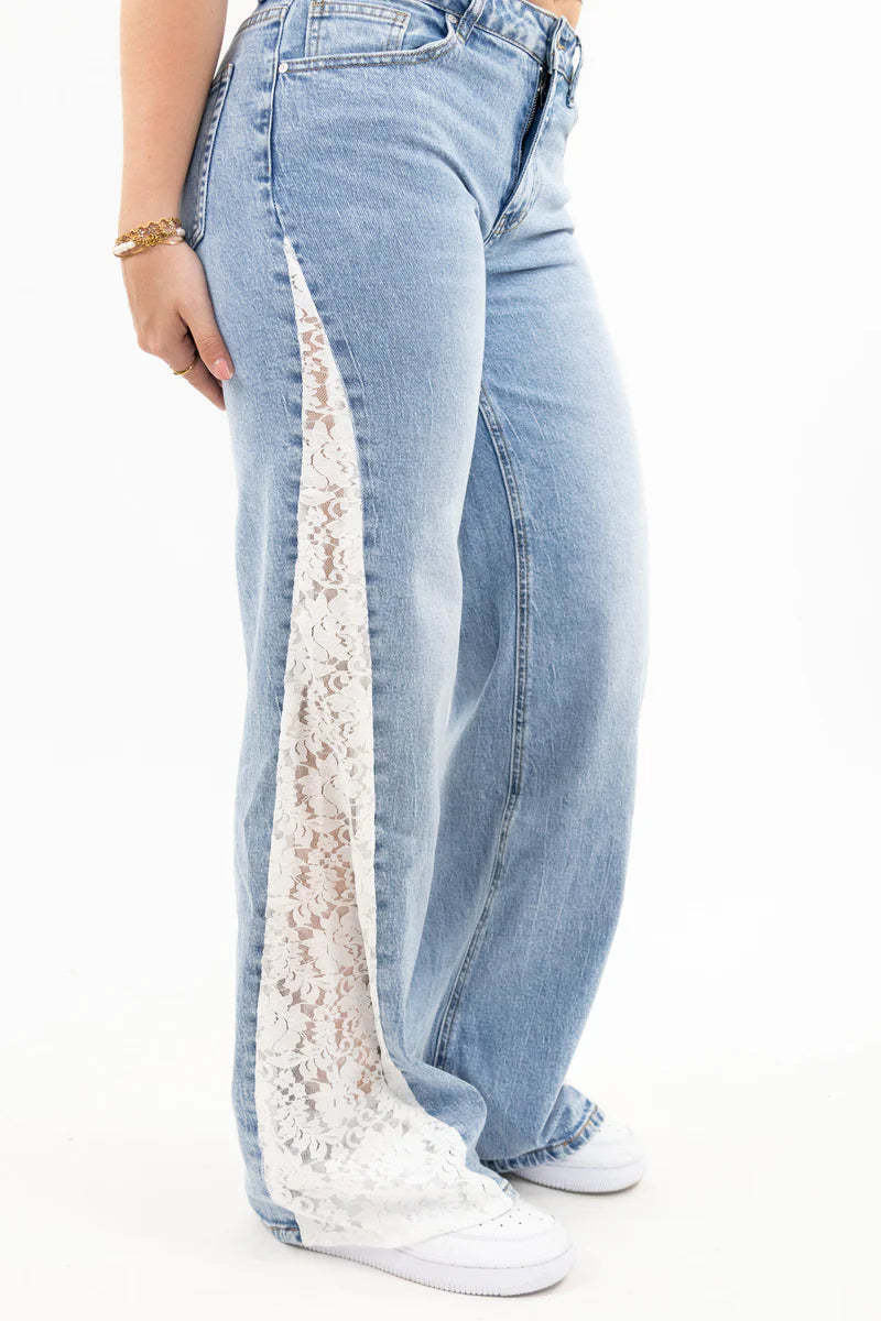 A must-have for the holidays and summer! We've created the perfect high-waisted, wide-leg jeans with lace-up details for the girl in you. Thanks to the stretch fabric, they're comfortable and fit perfectly!