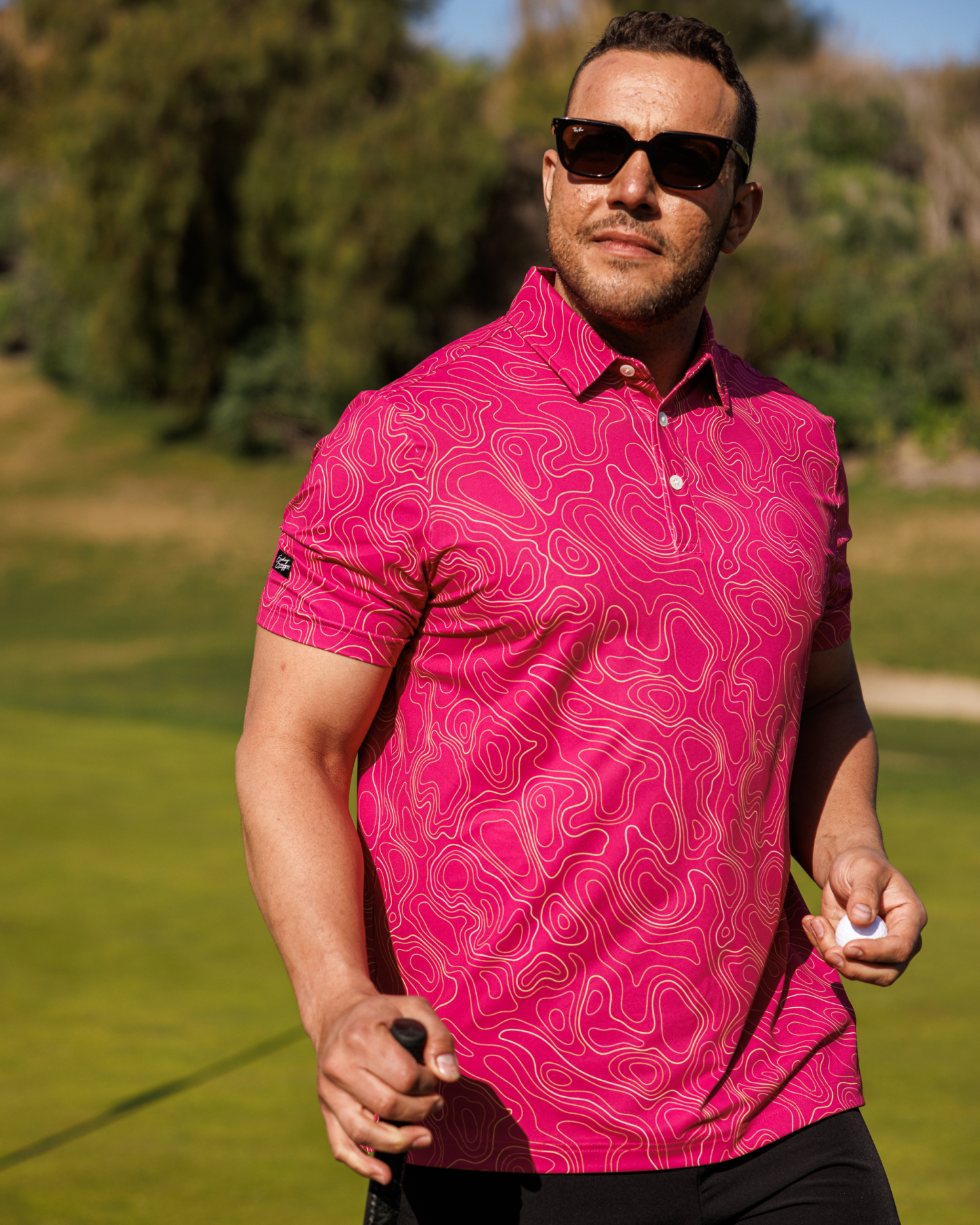 Swirly, sporty, and slightly dramatic…just how we like it. Covered with topographic lines and just the right amount of chaos, it’s made to move with your swing and stand out without even trying.