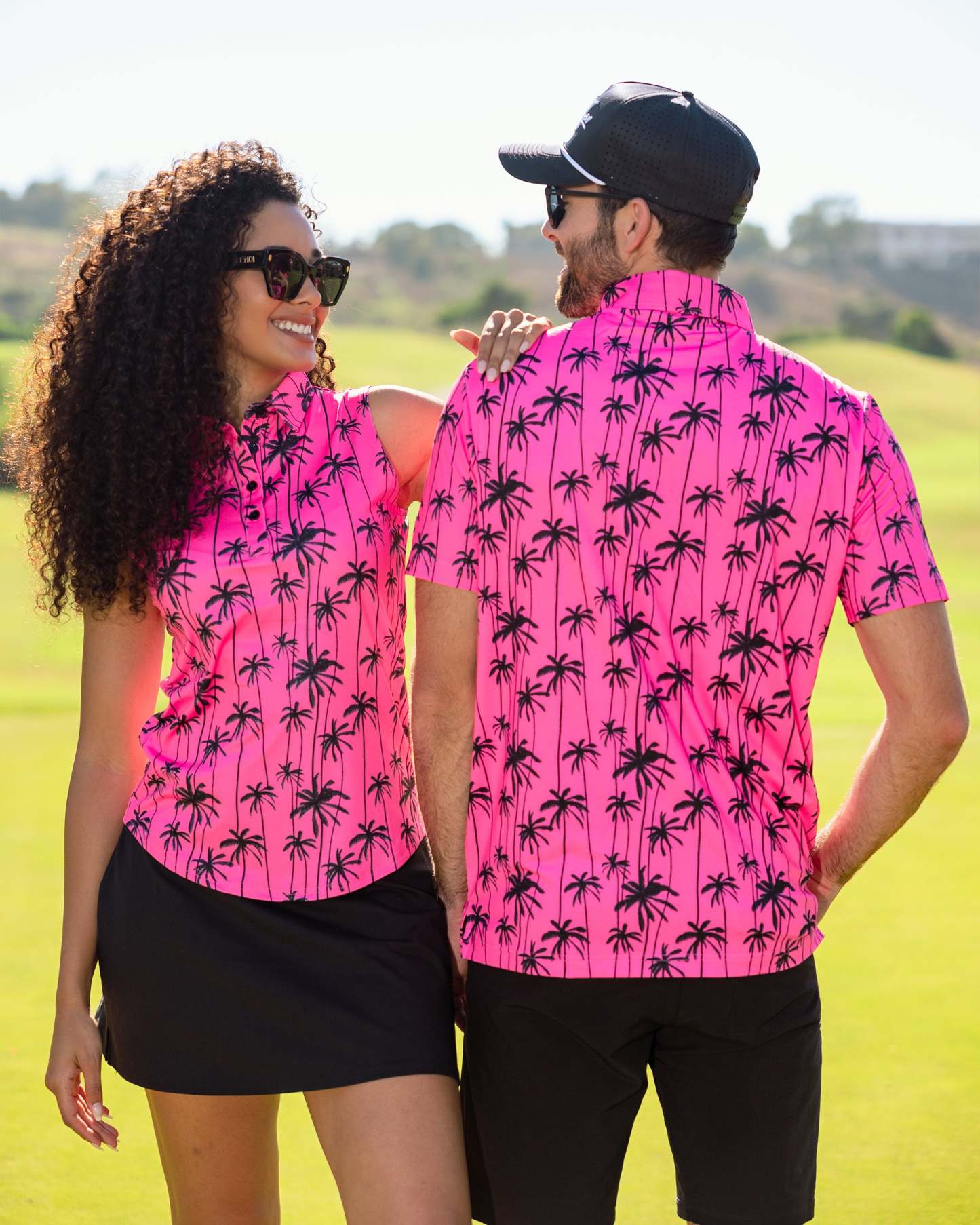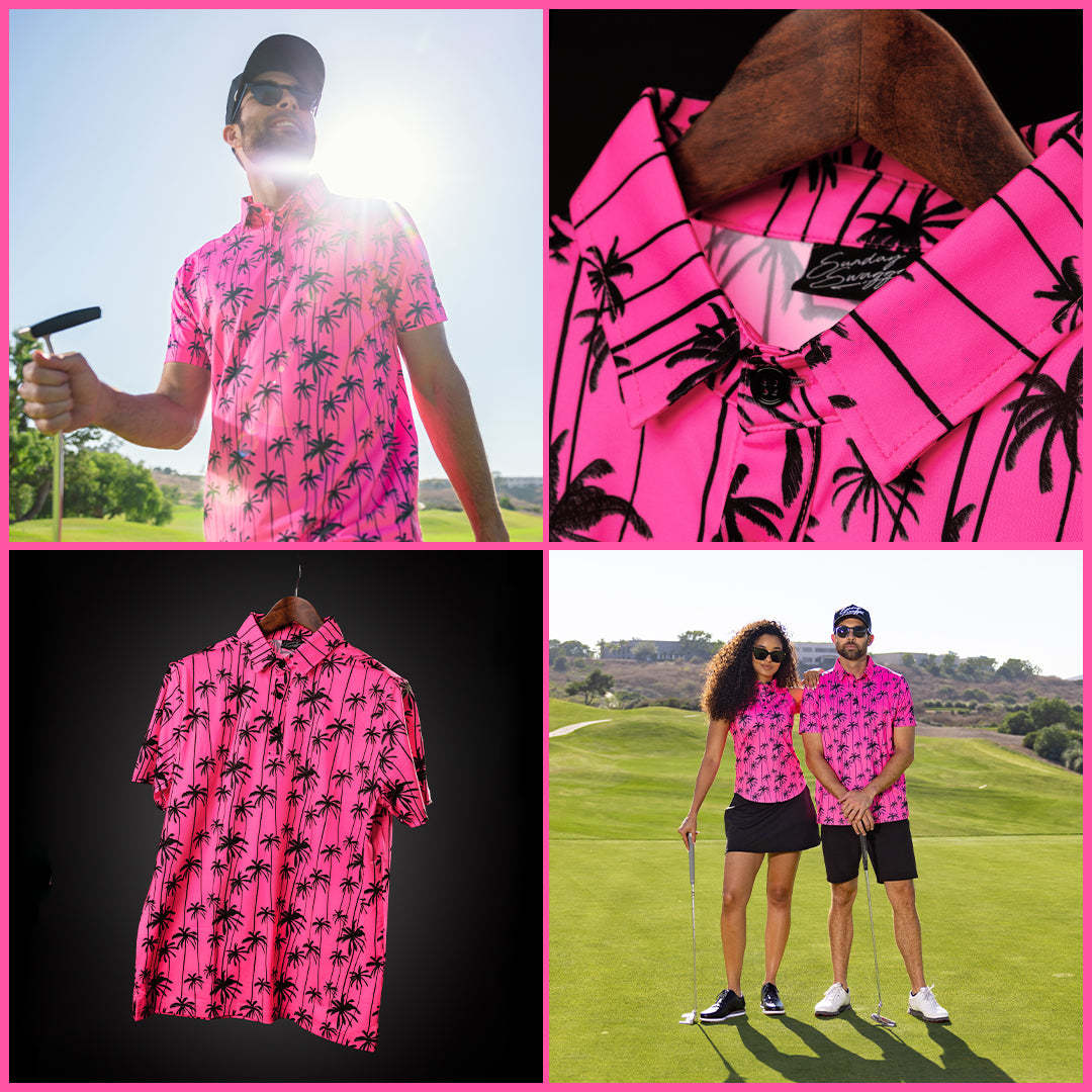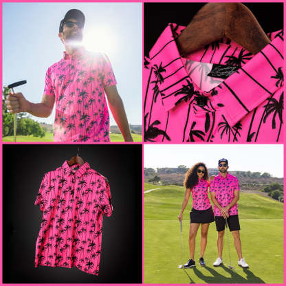A Sizzlin' hot pink polo with chic black palm trees, inspired by our favorite, famous blonde doll's iconic style. This vibrant design radiates confidence and playfulness, allowing golfers to embrace a little glamour while enjoying the course in style.