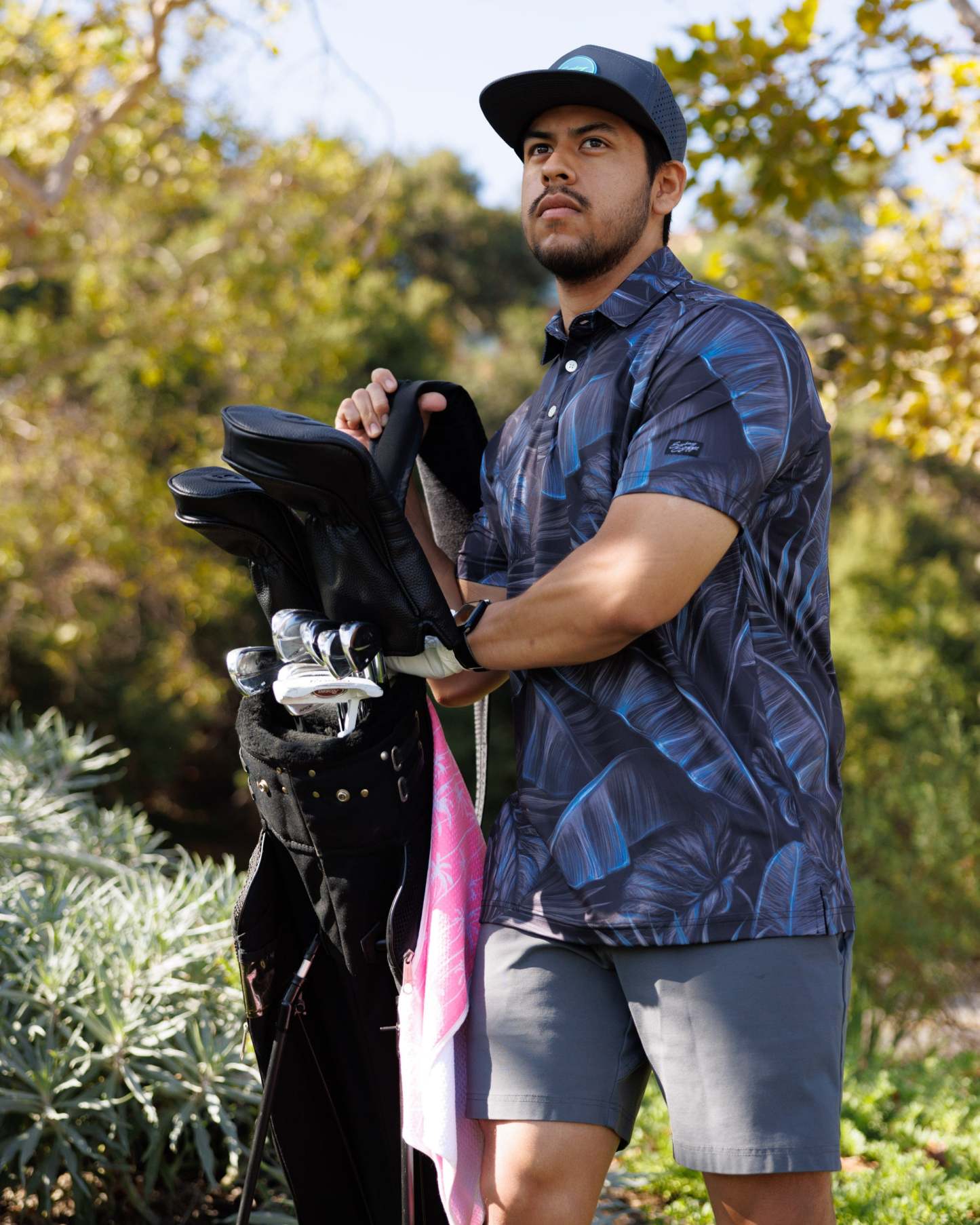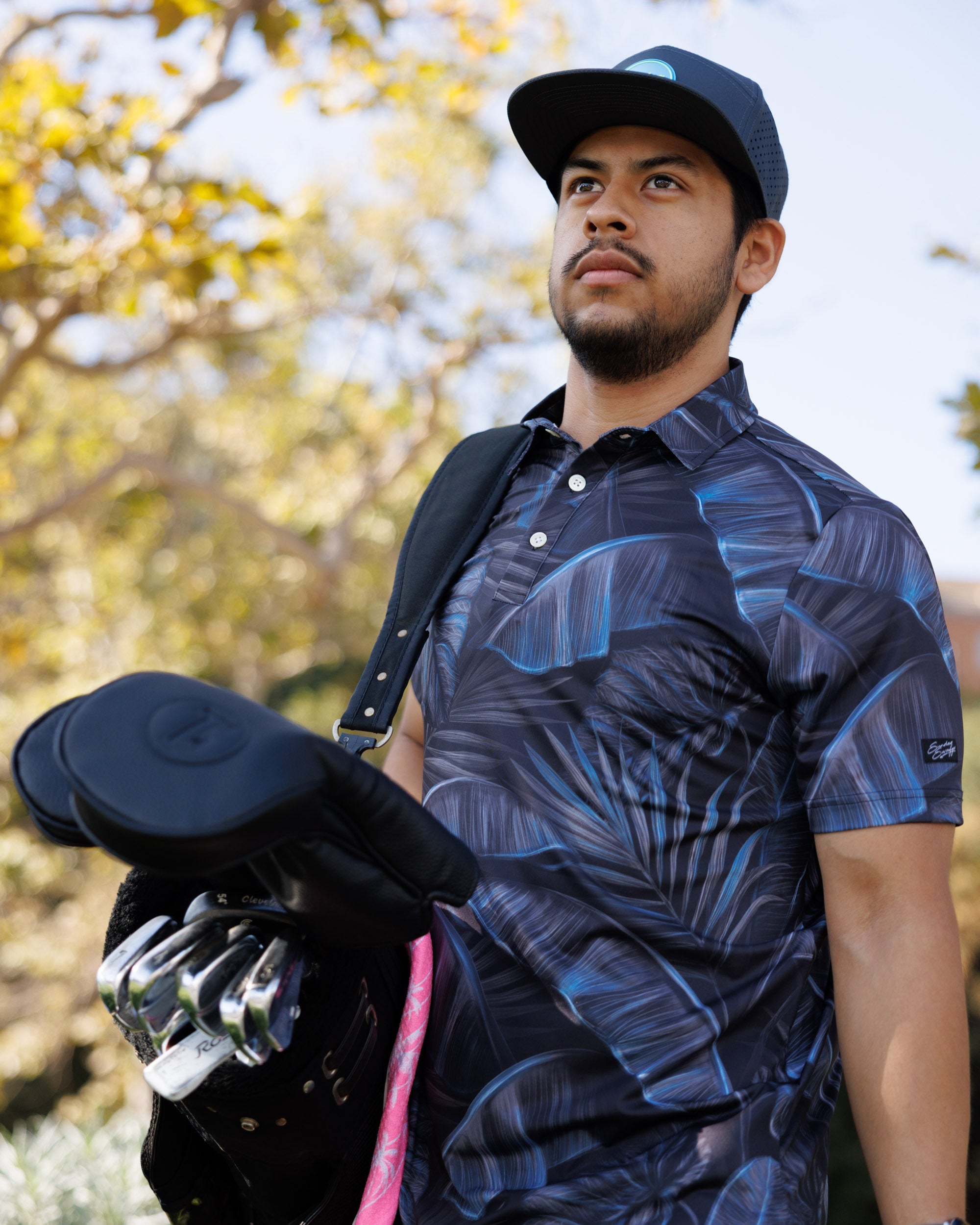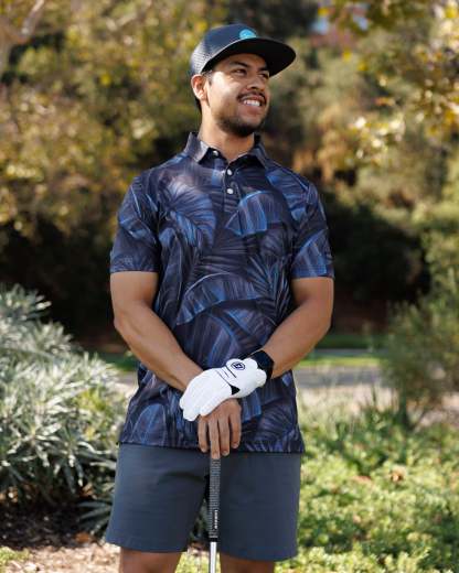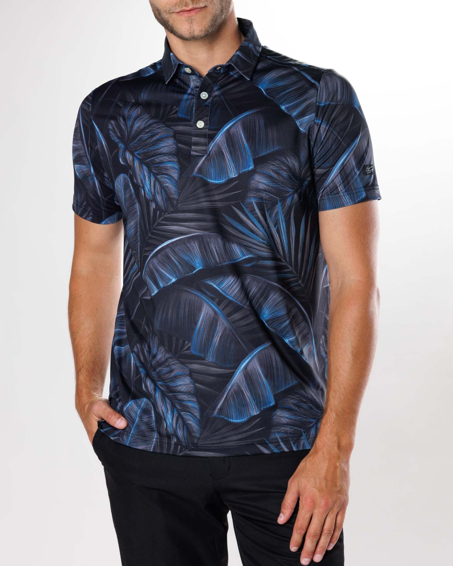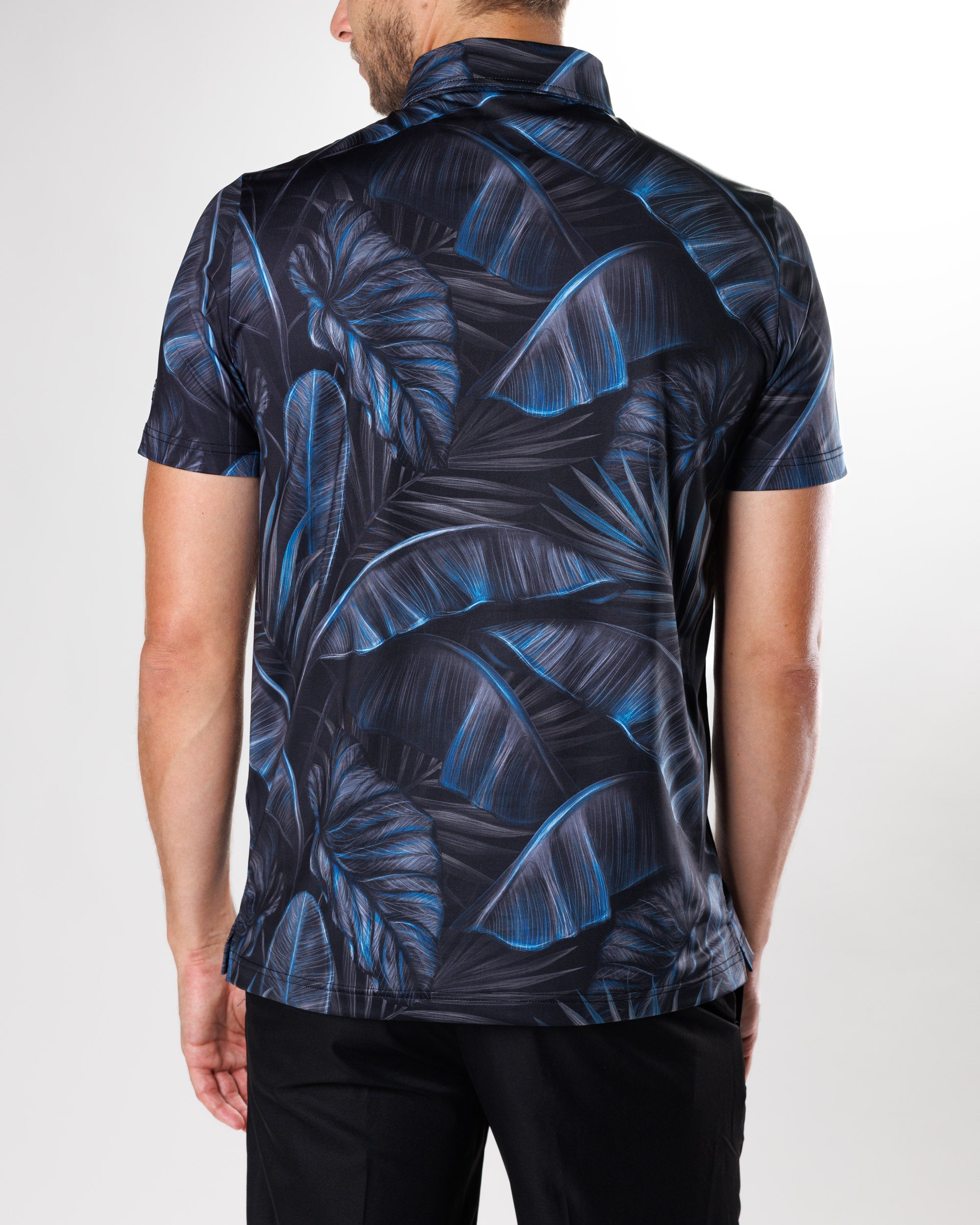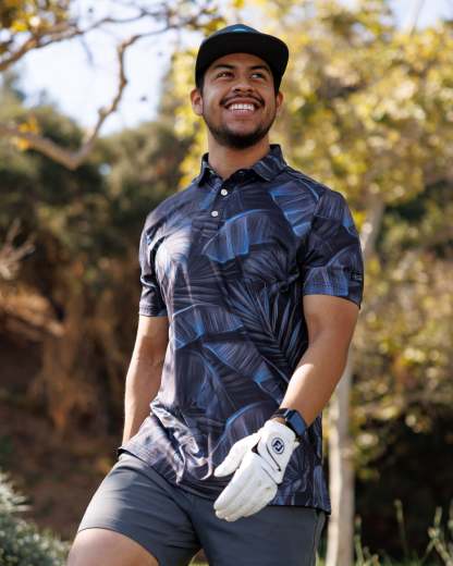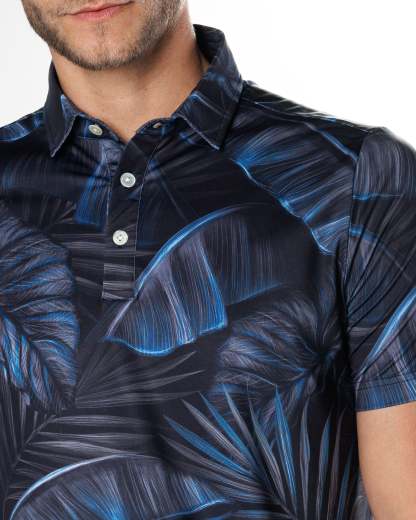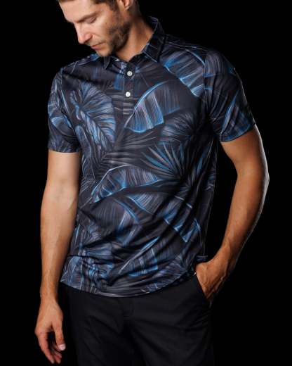 Blending an exotic paradise with noir mystery, this sophisticated polo reminiscent of a tropical nightfall will allure a sense of intrigue and elegance with every wear.