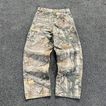 Camouflage pants tree branches distressed wide-leg loose straight jeans