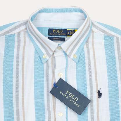 Polo Ralph Lauren Breezy Striped Classic Fit Shirt in Sky Blue and Cream