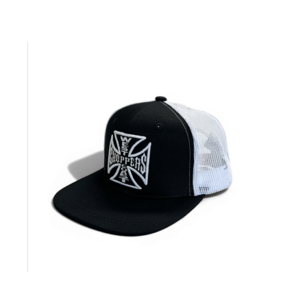 OG CROSS 6 PANEL FLATBILL HAT - BLACK/WHITE