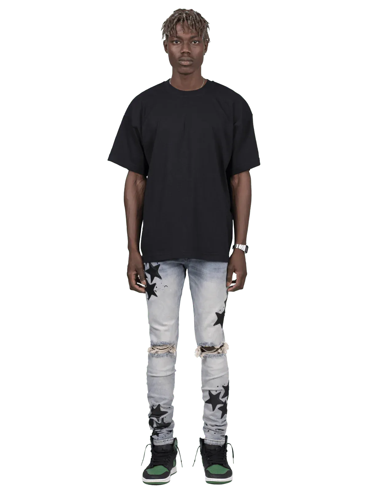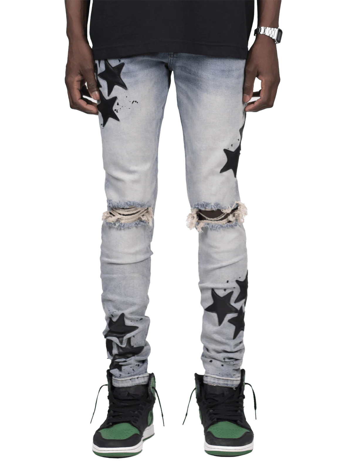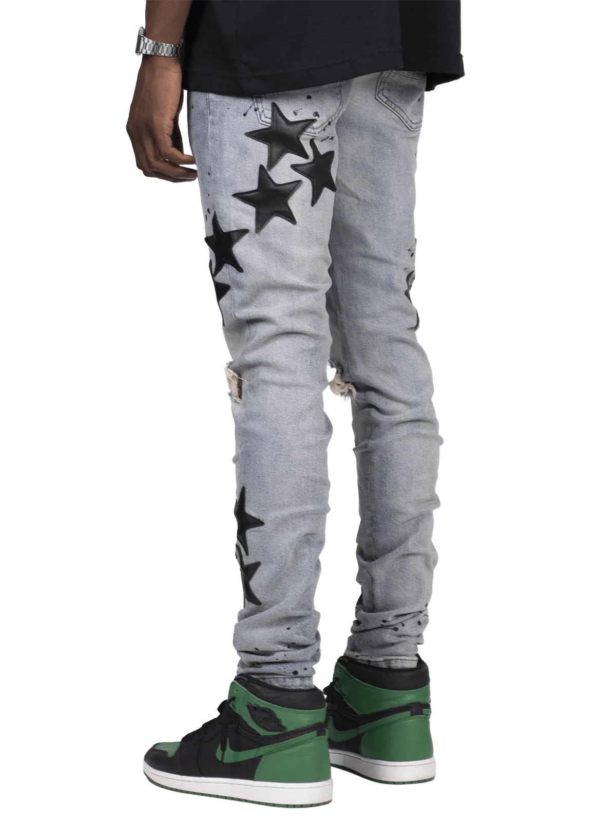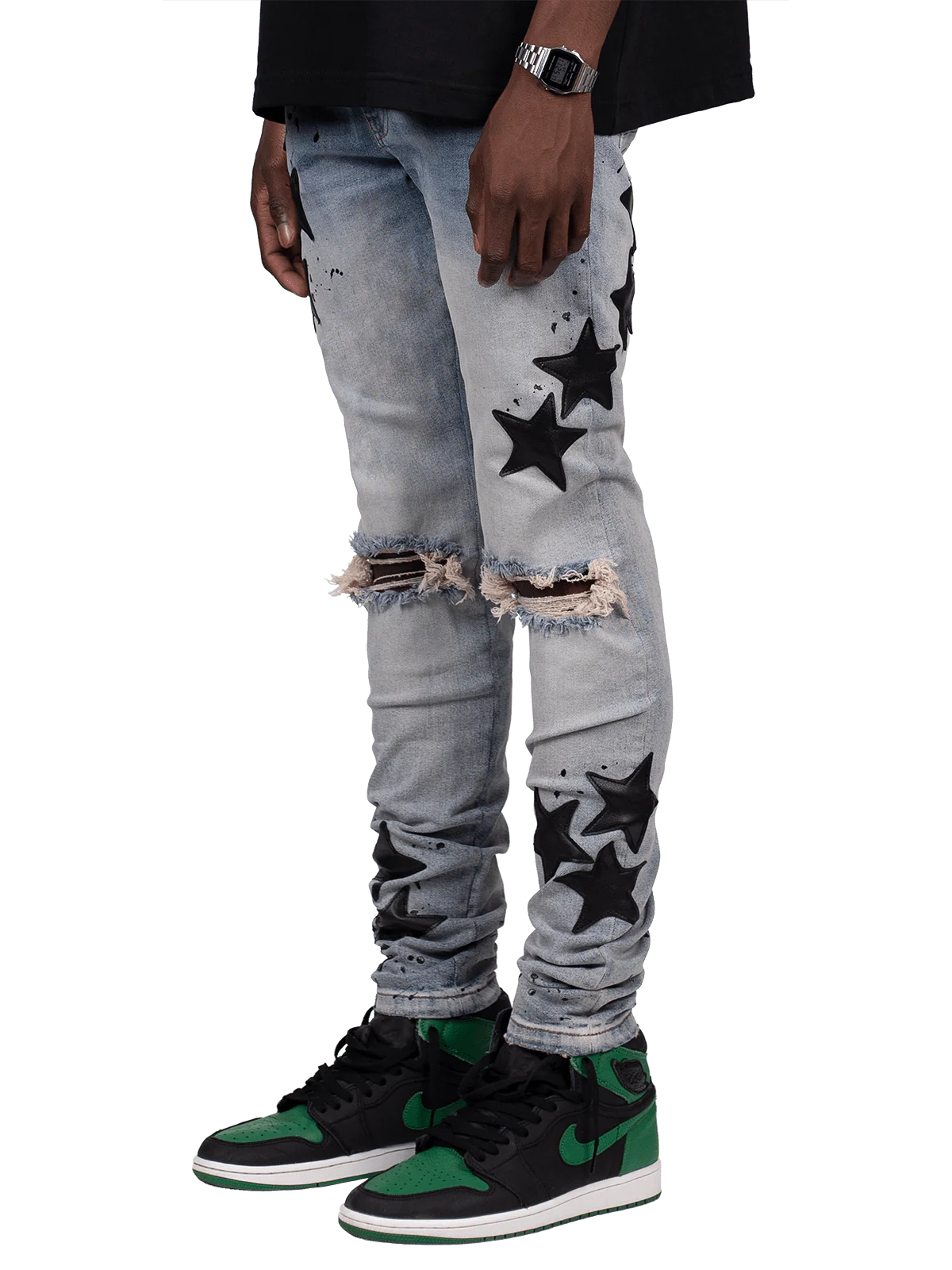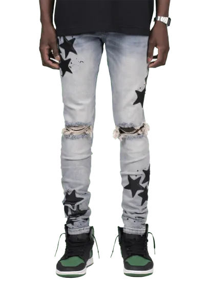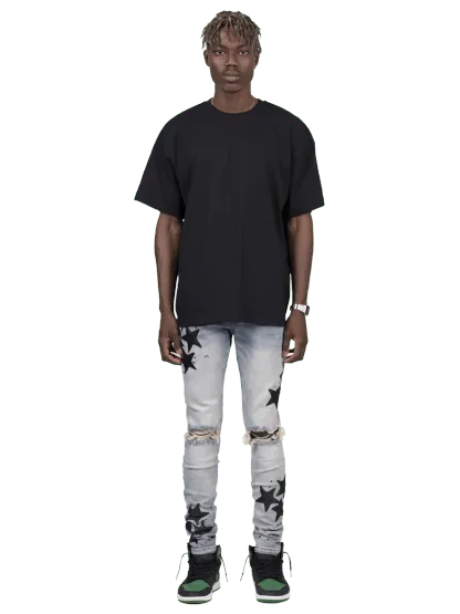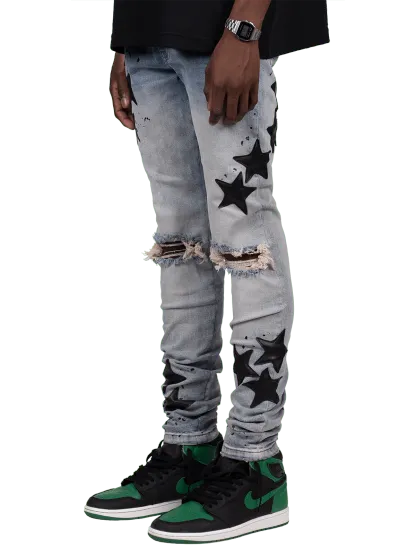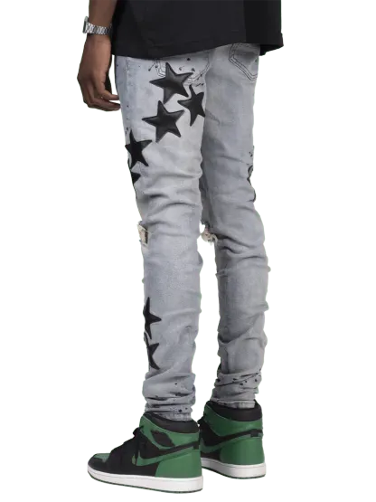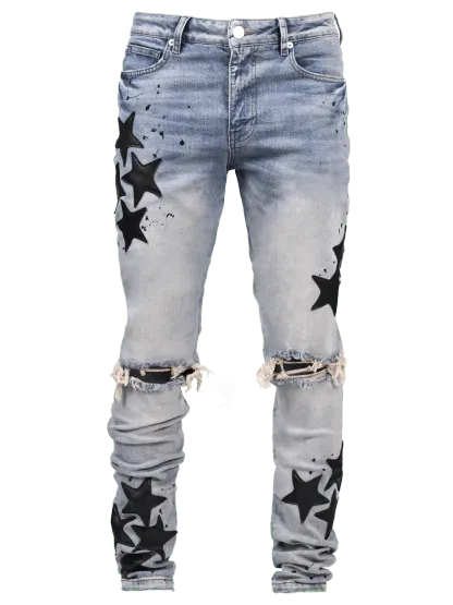 - star fabric sewn onto jeans